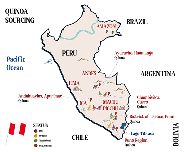 SIMPLi sources its quinoa directly from farming communities in the Andes mountains of Peru, where ideal growing conditions for the crop have existed for generations. We work with multiple farming communities throughout the Andes: in Andahuaylas in the Apurímac region, Ayacucho in the Huamanga province, Chumbivilca in the Cusco region, and the District of Taraco in the Puno region.